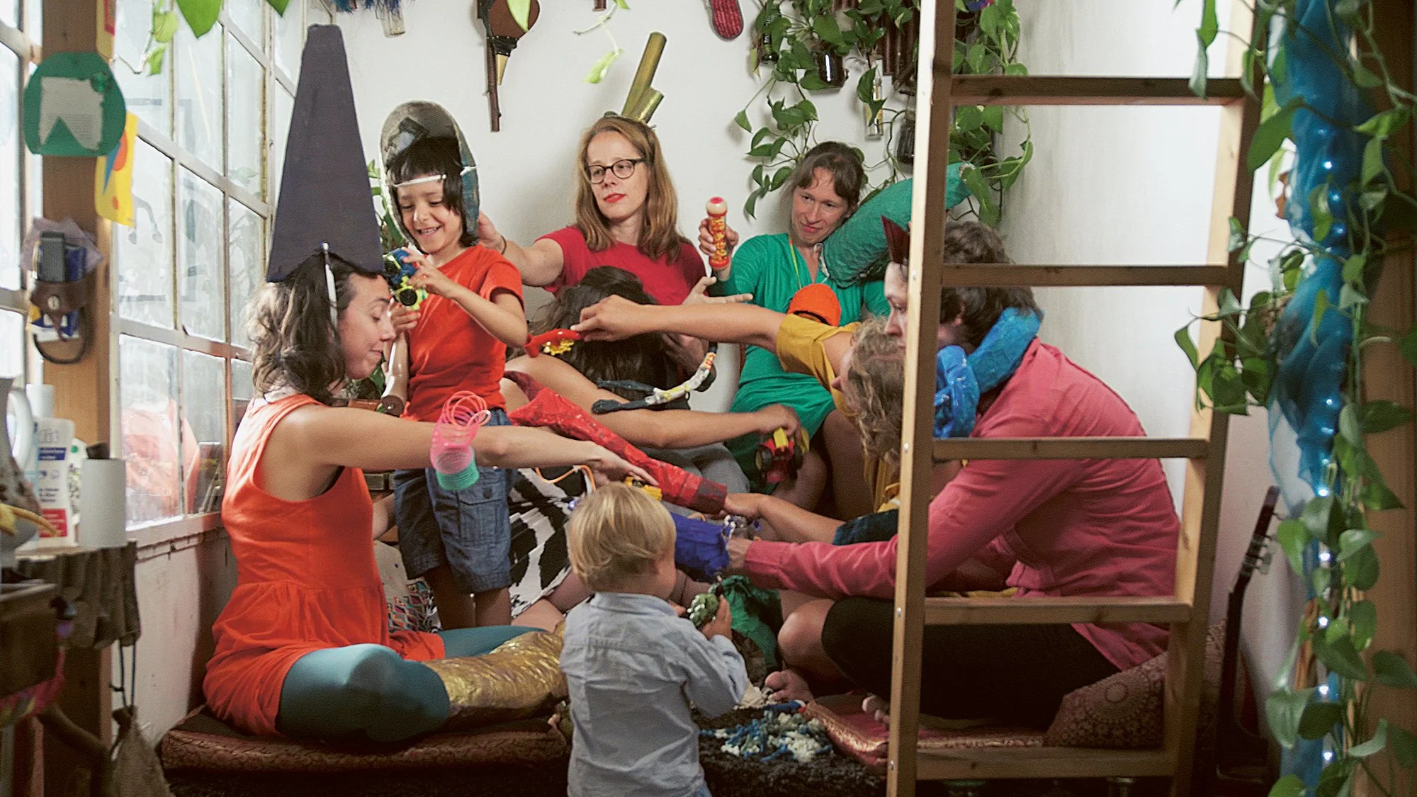 Collectively staged tableaux vivants and reenactments of art historical references are woven together with conversations among the collective’s members and performative interventions in outdoor spaces, alongside the children of the collective. Research into the work and life of some feminist predecessors - female artists and authors from the second wave of feminism (such as Adrienne Rich, Audre Lorde, Hélène Cixous, Marguerite Duras, Clarice Lispector, Valie Export and Valerie Solanas) flows into the film through quotes in sound and image and is reflected in conversations about the structural conditions of female artists then and now.